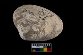 | Description / विवरण | Specimen of a large bivalve marine shell with ground edge. Probably used as spoon. |