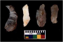 | Description / विवरण | There are n 4 flakes tool; there are flakes with sides trimmed, Marks of secondary flaking are present on the both the faces. |