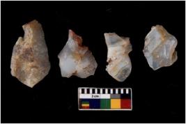 | Description / विवरण | There are n 4 flakes tool; there are flakes with sides trimmed, Marks of secondary flaking are present on the both the faces.The dorsal is relatively flat. |