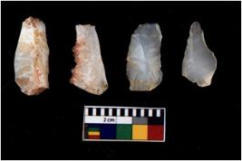 | Description / विवरण | There are n 4 flakes tool; there are flakes with sides trimmed, Marks of secondary flaking are present on the both the faces. |