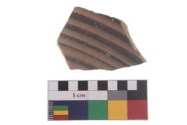 | Description / विवरण | Specimen of black on red ware with decorative geometric Five curved lines painting. |