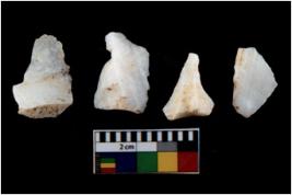 | Description / विवरण | There are n 4 utilized flake cores. There are multi directional irregular scar pattern on them. Two are tapering at one end and two have blunted edges. |