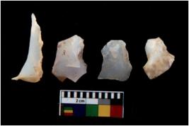 | Description / विवरण | There are n 4 utilized flake cores. There are multi directional irregular scar pattern on them. One has sharp edge and three have blunted edges. |