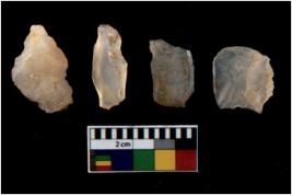 | Description / विवरण | There are n 4 utilized flake cores. There are multi directional irregular scar pattern on them. Two are tapering at one end and two have blunted edges. |
