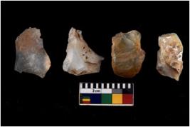 | Description / विवरण | There are n 4 flakes tool; there are flakes with sides trimmed, Marks of secondary flaking are present on the both the faces. |