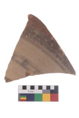 | Description / विवरण | Specimen of black on red ware with traces of decorative geometric Four parallel lines painting. |