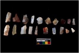 | Description / विवरण | There are n 20 Flake tool; There are multidirectional irregular scar pattern on them. few have blunt edges, Some of them are tapering at one end. |