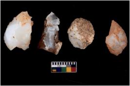| Description / विवरण | There are n 4 cores; there are multidirectional irregular scar pattern on them. The reverse bulb and platform can be seen. |