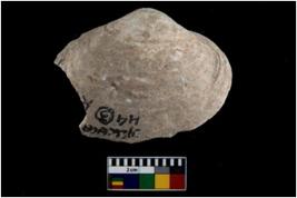 | Description / विवरण | Specimen of a large bivalve marine shell with ground edge. |