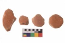 | Description / विवरण | Specimens of portions of disc of Red ware, most of them are damaged at the periphery as well. |