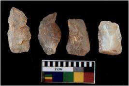 | Description / विवरण | There are n 4 utilized flake cores. There are multi directional irregular scar pattern on them. All of them are tapering at one end. |