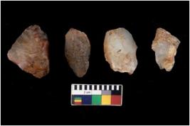 | Description / विवरण | There are n 4 flake cores. All of them are fully fluted flake cores without any trace of crested ridge flakes. Some are tapering at one end. Some have flat base and few have sharp edges. |