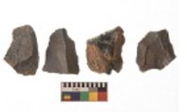 | Description / विवरण | There are n 4 utilized flakes. There are multi directional irregular scar pattern on both dorsal and ventral face of the flakes. One has flat base and three have blunted edges. |
