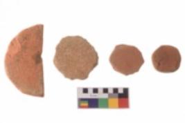 | Description / विवरण | Specimens of disc of Red ware, all are irregular at the periphery. |