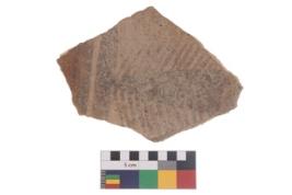 | Description / विवरण | Specimen of black on red ware with decorative geometric Crocodile body painting. |