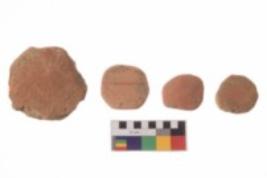 | Description / विवरण | Specimens of disc of Red ware, all are irregular at the periphery. |