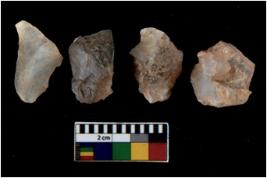 | Description / विवरण | There are n 4 utilized flake cores. There are multi directional irregular scar pattern on them. Two are tapering at one end and two have blunted edges. |