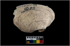| Description / विवरण | Specimen of a large bivalve marine shell with ground edge. |