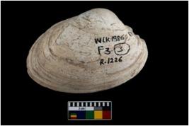 | Description / विवरण | Specimen of a large bivalve marine shell with ground edge. Probably used as spoon. |