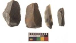 | Description / विवरण | There are n 4 utilized flakes. There are multi directional irregular scar pattern on both dorsal and ventral face of the flakes. Three are tapering at one end and one has sharp edge. |