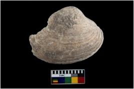 | Description / विवरण | Specimen of a large bivalve marine shell with ground edge. |