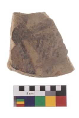 | Description / विवरण | Specimen of black on red ware with traces of decorative geometric Latticed loops painting. |