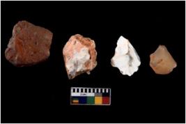 | Description / विवरण | There are n 4 cores; there are multi directional irregular scar pattern on them. Some of them are tapering at one end. Most of them having blunt edges. 3 chert and 1 quartz |