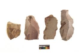 | Description / विवरण | There are n 4 of utilized worked cores and show irregular scar pattern on both dorsal and ventral side. Two have a flat base. |