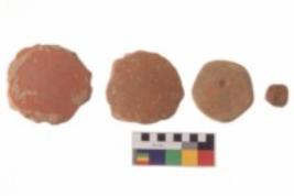 | Description / विवरण | Specimens of disc of Red ware, all are irregular at the periphery. |
