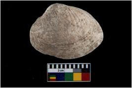 | Description / विवरण | Specimen of a large bivalve marine shell with ground edge. Probably used as spoon. |
