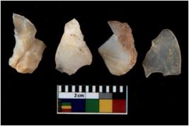 | Description / विवरण | There are n 4 utilized flake cores. There are multi directional irregular scar pattern on them. Three are tapering at one end and one has blunted edge. |