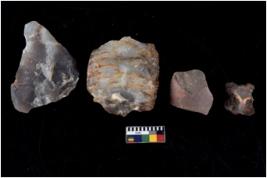 | Description / विवरण | There are n 4 of utilized worked cores and show multidirectional irregular scar pattern on both dorsal and ventral sides. Three are elongated in shape. |