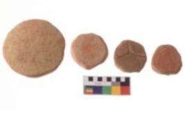 | Description / विवरण | Specimens of disc of Red ware, all are irregular at the periphery. |