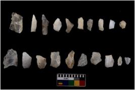 | Description / विवरण | Specimen of flakes tool with prominent flaking marks. It made up of a short flakes with sides trimmed |
