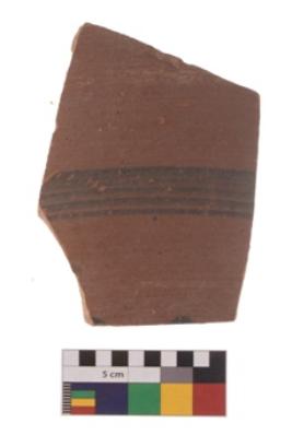 | Description / विवरण | Specimen of black on red ware with decorative geometric Five parallel lines painting. |