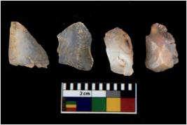 | Description / विवरण | There are n 4 utilized flake cores. There are multi directional irregular scar pattern on them. Two are tapering at one end and two have blunted edges. |