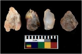 | Description / विवरण | There are n 4 utilized flake cores. There are multi directional irregular scar pattern on them. All of them are tapering at one end. |