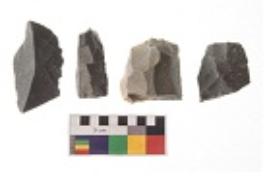 | Description / विवरण | There are n 4 utilized flakes. There are multi directional irregular scar pattern on both dorsal and ventral face of the flakes. Two are tapering at one end and two have blunted edges. |