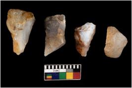 | Description / विवरण | There are n 4 flake cores. All of them are fully fluted flake cores without any trace of crested ridge flakes. Some are tapering at one end. Some have flat base and few have sharp edges. |