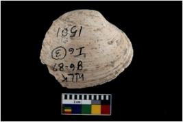 | Description / विवरण | Specimen of a large bivalve marine shell with ground edge. Probably used as spoon. |