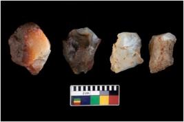 | Description / विवरण | There are n 4 flake cores. All of them are fully fluted flake cores without any trace of crested ridge flakes. Some have blunted edges and some have round edges. Few have flat base. |