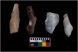 | Description / विवरण | There are n 4 cores; there are multi directional irregular scar pattern on them. Some of them are tapering at one end. Most of them having blunt edges. 4 chalcedony |