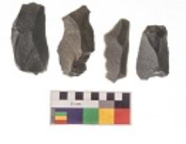 | Description / विवरण | There are n 4 utilized flakes. There are multi directional irregular scar pattern on both dorsal and ventral face of the flakes. Two are tapering at one end and two have sharp edges. |