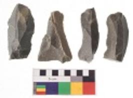 | Description / विवरण | There are n 4 utilized flakes. There are multi directional irregular scar pattern on both dorsal and ventral face of the flakes. Two are tapering at one end and two have sharp edges. |