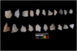 | Description / विवरण | Specimen of flakes tool with prominent flaking marks. It made up of a short flakes with sides trimmed |