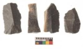 | Description / विवरण | There are n 4 utilized flakes. There are multi directional irregular scar pattern on both dorsal and ventral face of the flakes. Three are tapering at one end and one has sharp edge. |