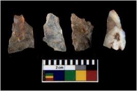 | Description / विवरण | There are n 4 utilized flake cores. There are multi directional irregular scar pattern on them. All of them are tapering at one end. |