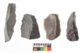 | Description / विवरण | There are n 4 utilized flakes. There are multi directional irregular scar pattern on both dorsal and ventral face of the flakes. Three are tapering at one end and one has sharp edge. |
