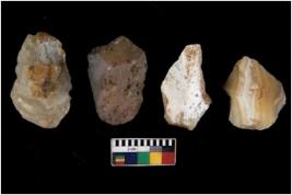 | Description / विवरण | There are n 4 flake cores. All of them are fully fluted flake cores without any trace of crested ridge flakes. Some are tapering at one end. Some have flat base and few have sharp edges. |