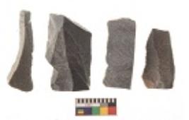 | Description / विवरण | There are n 4 utilized flakes. There are multi directional irregular scar pattern on both dorsal and ventral face of the flakes. Three are tapering at one end and one has sharp edge. |